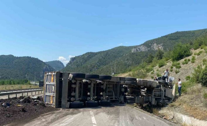 Alınan bilgilere göre; Bilecik’te Eskişehir istikametine seyir halinde olan Mehmet Kara (42) yönetimindeki 11 AAT 612 plakalı hurda yüklü tır, Ertuğrulgazi Tüneli’ne gelmeden sürücünün direksiyon hakimiyetini kaybetmesi sonucu kontrolden çıkarak orta refüje çarpıp yola devrildi. Kazada araç sürücü Mehmet Kara yaralandı. Yaralı olay yerine gelen sağlık ekiplerince yapılan ilk müdahalenin ardından Bilecik Eğitim ve Araştırma Hastanesine kaldırıldı. Yaralının sağlık durumun iyi olduğu öğrenilirken, jandarma kazayla ilgili inceleme başlattı.