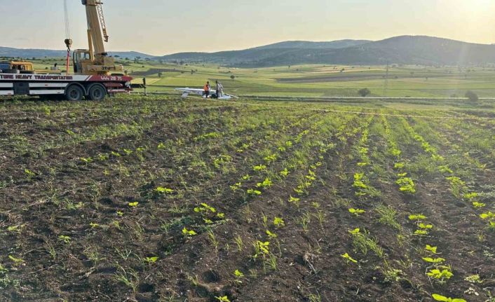 Bilecik’te düşen uçak, vinç yardımıyla kaldırıldı