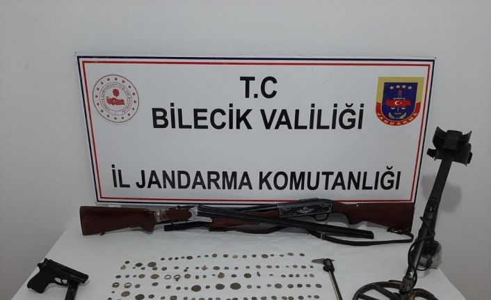 İl Jandarma Komutanlığı ekiplerince, Söğüt ilçesinde 1 şüpheli şahsın tarihi eser bulundurduğu tespit edildi. Adli makamlardan alınan arama ve el koyma kararına istinaden ekipler M.A. isimli şahsın evinde arama faaliyeti icra etti. Yapılan aramada 125 adet sikke, 15 adet muhtelif obje, 1 adet küp, 1 adet dedektör, 2 adet av tüfeği ve 1 adet kurusıkı tabanca ele geçirildi. Malzemelere el konulurken, şahıs gözaltına alındı.