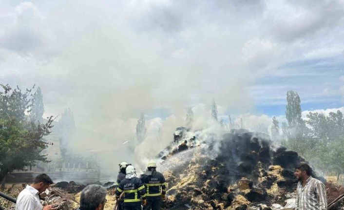 Sivas’ın merkeze bağlı bir köyünde çıkan yangında bin balya saman yandı.