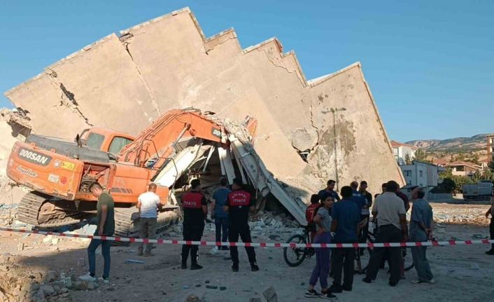 Adıyaman’ın Gölbaşı ilçesinde yıkım çalışması yapan iş makinasının üzerine 6 katlı bina çöktü.
