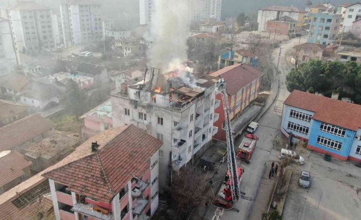 Karabük’te 4 katlı bir binanın çatısında patlama meydana geldi. Patlaması sonrasında yangın çıktı. Alevlerin tüm çatıyı sardığı yangına itfaiye ekipleri müdahale etti.