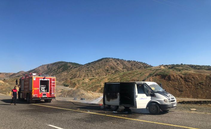 Bingöl’de seyir halindeki bir minibüs yanarak kullanılamaz hale geldi.