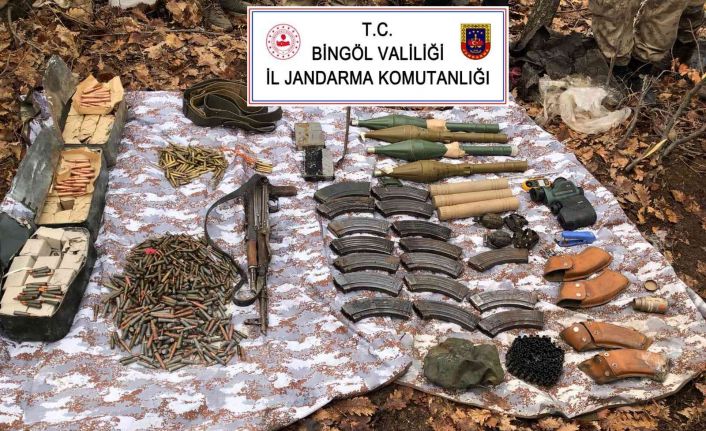 Valilik tarafından yapılan açıklamada, “Bingöl İl Jandarma Komutanlığınca yürütülen çalışmalar neticesinde; 14 Aralık 2021 tarihinde Bingöl ili Genç ilçesi kırsalında Eren-Kış-6 operasyonu kapsamında yapılan arazi aramasında toprağa gömülü vaziyette; 1 adet jelikan içerisinde 1 adet AK-47 Kalaşnikov Piyade Tüfeği, 4 adet roketatar mühimmatı, 3 adet roketatar sevk fişeği, 2 adet el bombası, bin 500 adet 7,62x39 milimetre fişek, 960 adet 7,62x54 milimetre fişek, 130 adet 5,56x45 milimetre fişek, 2 adet Zagros şarjörü, 17 adet Kalaşnikov Piyade Tüfeği şarjörü, 1 adet 8x25 keskin nişancı dürbünü. 10 adet elektrikli fünye, 1 adet 150’ lik bixi mayonu, 4 adet AK-47 Kalaşnikov Piyade Tüfeği şarjör kütüklüğü, 1 adet lazer metre, 1 adet manometre ve 3 adet palaska ele geçirilmiştir. Operasyon bölgesinde bölücü terör örgütü mensuplarınca kullanılan sığınaklar ve malzemeler imha edilerek kullanılamaz hale getirilmiştir” denildi.