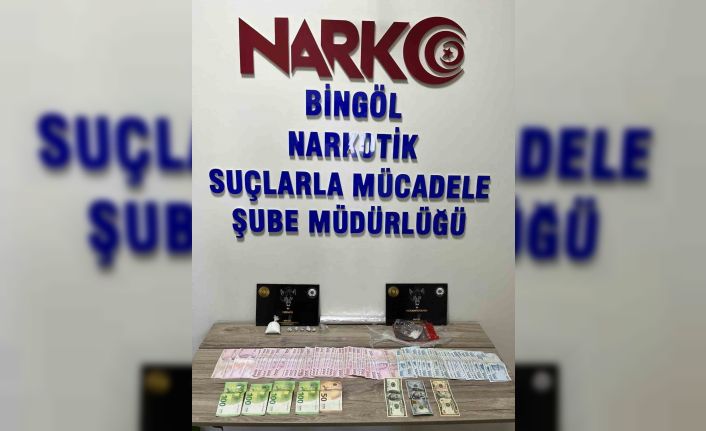 Bingöl Emniyet Müdürlüğü Narkotik Suçlarla Mücadele Şube Müdürlüğüne bağlı narko timleri, uyuşturucu ve uyarıcı madde imal ve ticareti yaparak haksız ekonomik kazanç sağlayan şahıslara yönelik çalışma gerçekleştirdi. Çalışmalar neticesinde, 57.29 gram kokain maddesi, 20.16 gram metamfetamin maddesi, suçtan elde edildiği değerlendirilen 10 bin 500 TL, 450 euro ve 210 dolar ele geçirildi.