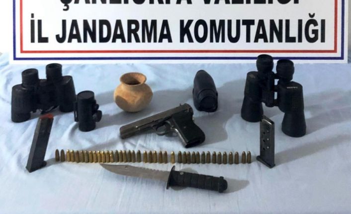 Edinilen bilgiye göre, İl Jandarma Kaçakçılık ve Organize Suçlarla Mücadele Şubesi ekipleri, silah, mühimmat ve tarihi eser kaçakçılığıyla mücadele çalışmaları kapsamında ilçedeki bir adrese operasyon düzenledi. Adreste yapılan aramada tarihi eser niteliği taşıyan toprak küp, ruhsatsız tabanca, 39 mermi, 2 dürbün ile bir bıçak ele geçirildi. Gözaltına alınan K.Ş. işlemleri için jandarma karakoluna götürüldü.