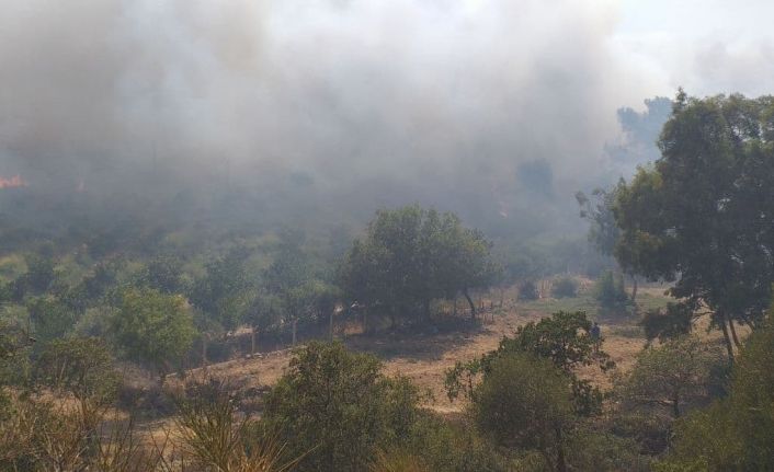Muğla’nın Bodrum ilçesindeki makilik alanda çıkan yangını söndürme çalışmaları devam ediyor.