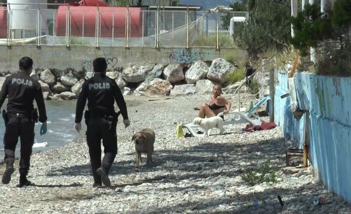 Bodrum’da sahilde bikinisiyle güneşlenen kadın karşısında polisleri görünce şok oldu. Köpekleriyle beraber sahilin görünmeyecek bir bölümünde güneşlenen kadına polis ekiplerince tutanak tutuldu.