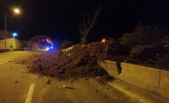 Bolu Dağı Tüneli çıkışında heyelan meydana geldi. Toprağın yola kaymasının ardından tünel Ankara ve İstanbul yönlerinde araç geçişine kapatıldı. İhbar üzerine adrese sevk edilen ekiplerin çalışmaları sürüyor.