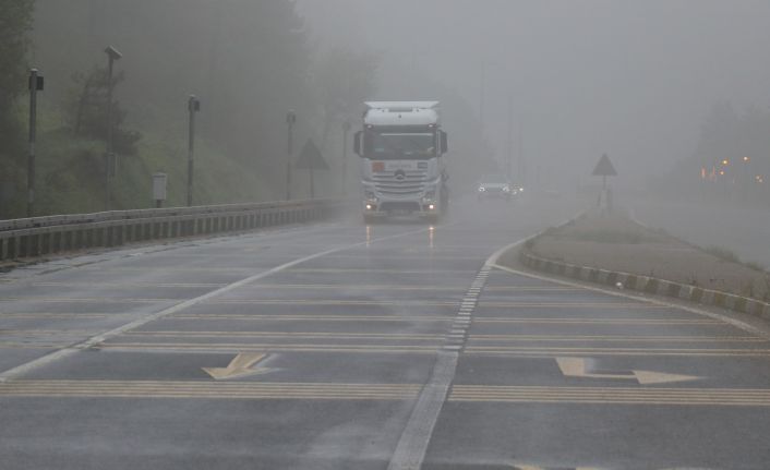Bolu Dağı’nda yağmur ve yoğun sis nedeniyle görüş mesafesinin yer yer 25 metreye kadar düşmesi sürücülere zor anlar yaşatıyor.