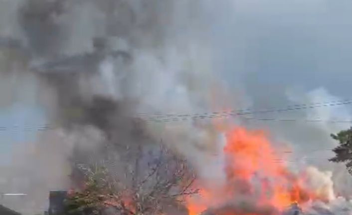 Bolu’da bir depoda çıkan yangın, depoyu ve iki evi küle çevirdi.