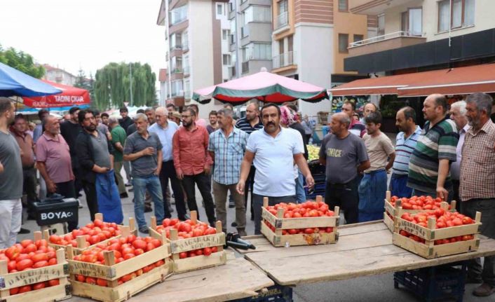 Bahçelievler Mahallesi’nde kurulan semt pazarı içerisinde bulunan bir zincir marketin domates fiyatının bir günde yarıya düşürdüğünü ve tezgahlarının kaldırımlarını işgal ettiğini belirten Bolu Manavcılar ve Pazarcılar Esnaf Odası Başkanı Mustafa Altundal, “Biz pazarcı esnafı olarak, işimizde gücümüzde olan esnaflarız. Bizim mesleğimiz zor. Herkesin mesleği zor, ama inanın bizim mesleğimiz diğer meslek dallarına göre çok zor. Bizim gecemiz, gündüzümüz, kışımız yok. Biz zor şartlarda para kazanıyoruz. Benim esnafımın işiyle, aşıyla, gücüyle uğraşacak adamın alnını karışlarım. Bu ne rezillik ya? Bu ne ayıp ya? Gözü olanın gözü çıksın. Zincir marketin başımızın üstünde yeri var. Bolu’da 24 tane şubesi var. Çalışan bizim Bolulular. Allah bin kere razı olsun. 50-100 bin çeşit ürün satıyorsun. 24 tane şubede domatesi 16 liradan satıyorsun, bugün burada 8 lira. Bu ne ya? Dün de bu şubede 15 liraydı abi. Türkiye’deki bütün illerde marketlerin, manav reyonları, sebze reyonları içeride olur. Ama nedense bizim Bolu’da yolun ortasında. Adam otobüs durağını kapatmış. Sebze meyve dökmüş ya. Neymiş? İşgal parasını alıyormuş. Bana valilik önünden yer belirtsin de bedelini ödeyelim biz de açalım. Benim esnafım 10 santimetre ileri çıksın zabıta gelir” dedi.