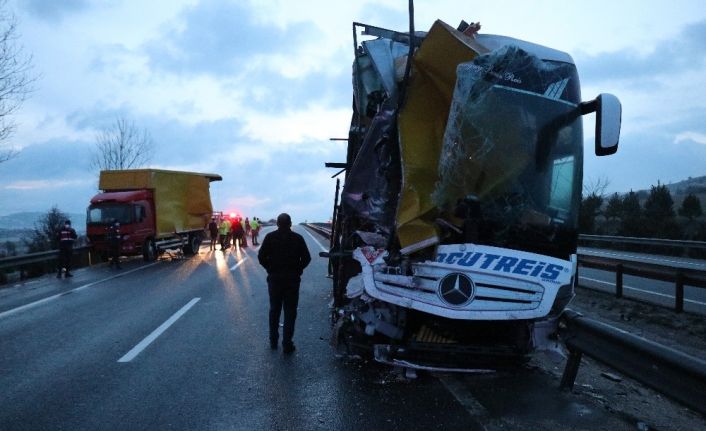 Bolu’nun Gerede ilçesinde D100 Karayolu’nda seyir halindeyken arıza yaptığı için yol kenarında duran kamyona çarpan otobüsteki 3 yolcu yaralandı.