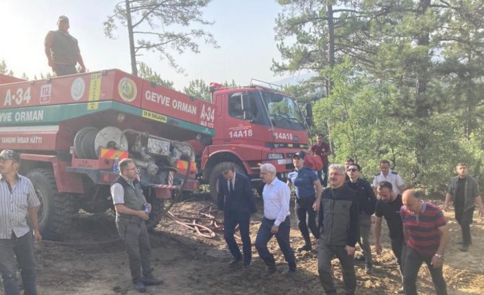 Yangınla ilgili açıklamalarda bulunan Vali Erkan Kılıç, “Göynük ilçemize bağlı Demirhanlar köyü Karalı mevkiinde çıkan orman yangınına valiliğimizin koordinesinde Göynük Orman İşletme Müdürlüğünden 3 adet arazöz, 1 adet yangın söndürme aracı ve 40 Orman İşletme personeli, Mudurnu Orman İşletme Müdürlüğünden 1 adet arazöz, Göynük Belediyesinden 1 adet su tankeri, Sakarya Büyükşehir Belediyesinden 2 adet itfaiye aracı, Nallıhan Orman İşletme Müdürlüğünden 1 adet arazöz, Çanakkale Orman Bölge Müdürlüğünden 1 adet yangın söndürme helikopteri, Demirhanlar, Gürpınar, Hasanlar, Bölücekova ve Ahmetbeyler köylerinden 15 adet su tankeri, Aksa Termik Santrali’nden 1 adet itfaiye aracı, İM Köse Madencilik’ten 1 adet kamyon, 1 adet dozer, 30 sivil vatandaş, Göynük İlçe Jandarma Komutanlığından 3 jandarma asayiş timi, 3 jandarma trafik timi, Mudurnu İlçe Jandarma Komutanlığından jandarma asayiş timi ve 1 jandarma trafik timi, Göynük İlçe Emniyet Müdürlüğünden 2 asayiş timi ve 1 trafik timi ile hem havadan hem de karadan müdahale edilmiştir. Yangın halen devam etmekte olup, kontrol altına alınmıştır. Olayla ilgili yapılan araştırma sonucunda yaklaşık 8 hektarlık çam ormanının yanarak zarar gördüğü tespit edilmiştir. Meydana gelen olayla ilgili olarak Göynük Orman İşletme Müdürlüğü tarafından adli tahkikat başlatılmıştır” dedi.