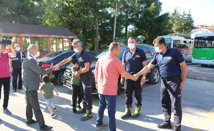 Karşılama töreninde konuşan Bolu Belediye Başkanı Tanju Özcan, 3 itfaiyeciye de Bolu halkı adına teşekkür ederek, “Çok teşekkür ediyoruz Bolu halkı adına, Türk milleti adına. Çok büyük gayretlerinizin olduğunu biliyorum. 60 civarında arama-kurtarma çalışmasına katılmışsınız. Allah razı olsun sizlerden” dedi.