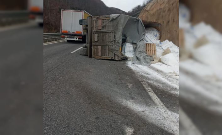 Bursa’nın İnegöl ilçesinde meydana gelen kazada bor yüklü tır devrildi. Kazada sürücü yaralandı.