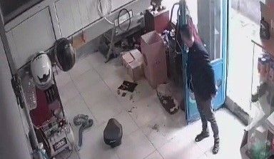 Güvenlik kameralarına yansıyan görüntülere göre, E.A. adlı şüpheli girdiği motosiklet tamir dükkanında kimsenin olmadığını düşünerek içeri girdi. Bir süre etrafa bakan şüpheli daha sonra iş yeri çalışanının tezgah üzerinde duran cep telefonunu alarak uzaklaştı.