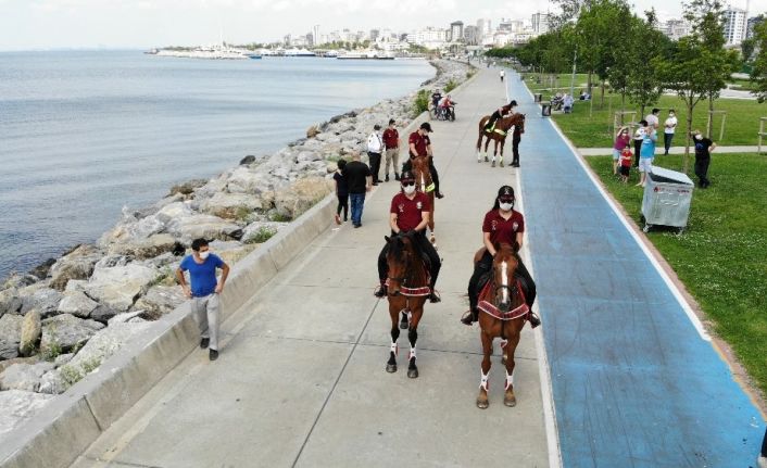Vatandaşlar tarafından büyük ilgiyle karşılaşan atlı polis ekipleri, yaşanabilecek olumsuzluklara karşı devriye gezdi. Sahilde 4 kişilik gruplar halinde gezen ekipler korona virüs tedbirleri kapsamında vatandaşları sosyal mesafe konusunda uyardı. Ekipler sahilde devriye attığı esnada maske takmayan vatandaşları uyarıp kurallara uymaları noktasında ikaz etti.