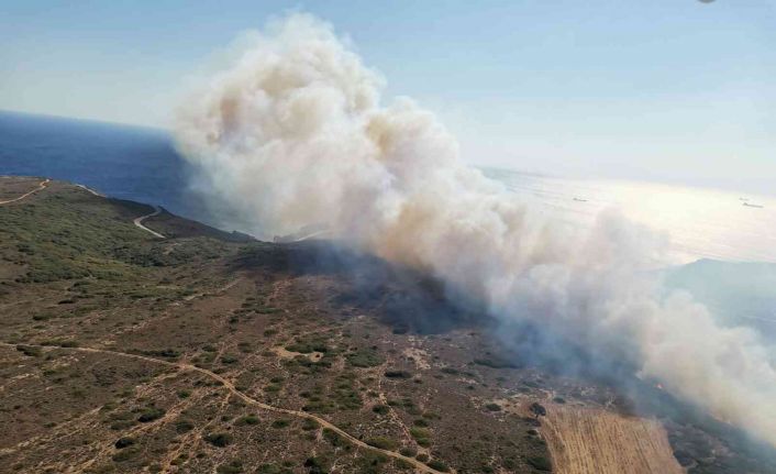 Çanakkale’nin Bozcaada ilçesinde saat 16.30 sıralarında çöplük alanda yangın çıktı. Dumanları gören vatandaşların durumu 112 Acil Çağrı Merkezine bildirmesi üzerine olay yerine Çanakkale Orman Bölge Müdürlüğüne bağlı ekipler sevk edildi. Yangına, 5 helikopter, 3 uçak, 2 ilk müdahale aracı, 4 arazöz, 5 belediye itfaiyesi ve 72 personel ile müdahale ediliyor.