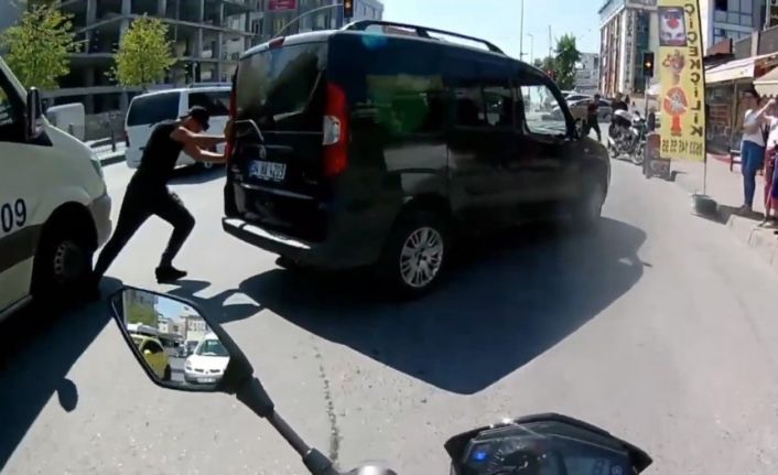 Esenyurt Doğan Araslı Bulvarı üzerinde bir sürücü hafif ticari aracıyla seyrettiği esnada henüz bilinmeyen bir nedenle aracı bozuldu. Bunun üzerine aracını iterek yol kenarına çekmek istedi. O esnada seyreden minibüs adamın ayağını ezdi. Ayağını lastiğin altına girdiğini fark eden adam bağırarak tepki gösterdi. Bunun üzerine minibüs sürücüsü geri manevra yaparak yoluna devam etti. Adamın şaşkınlık yaşadığı o anlar motosikletlinin kask kamerasına yansıdı.