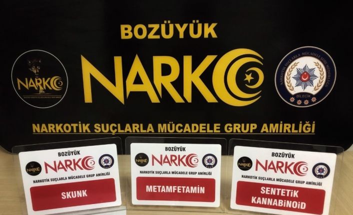 Edinilen bilgiye göre, Bozüyük Narkotik Suçlarla Mücadele Grup Amirliği ekiplerince gerçekleştirilen operasyonda E.G., G.E., S.Ş.ve C.R.Ç. isimli şüpheliler gözaltına alınarak haklarında yasal işlem yapıldı. Operasyon kapsamında şüphelilerden C.R.Ç.’in evinde ve diğer şüphelilerin üst aramalarında 5.73 gram skunk, 0.63 gram esrar, 0.34 gram metamfetamin, 2 adet uyarıcı, 1 adet bong ve 8.05 gram bonzai yapımında kullanılan yeşil renkli bitki parçacıkları ele geçirildi.