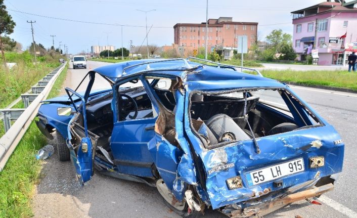 Samsun’un Terme ilçesinde karayolunda seyir etmekte olan tır, yan şeridinde bulunan otomobile çarptı. Alınan bilgiye göre, Samsun-Ordu karayolunda seyir etmekte olan Nihat Gülten hakimiyetindeki 55 LH 915 plakalı otomobile, aynı istikamette hareket eden Murat Yavuz Özkanca idaresindeki 55 ANL 08 plakalı tüp yüklü tır yandan çarptı. Çarpmanın etkisiyle savrulan otomobil hurdaya döndü. Kazada yaralanan otomobil sürücüsü Nihat Gülten, 112 acil servis ekipleri tarafından Terme Devlet Hastanesi’ne kaldırıldı.