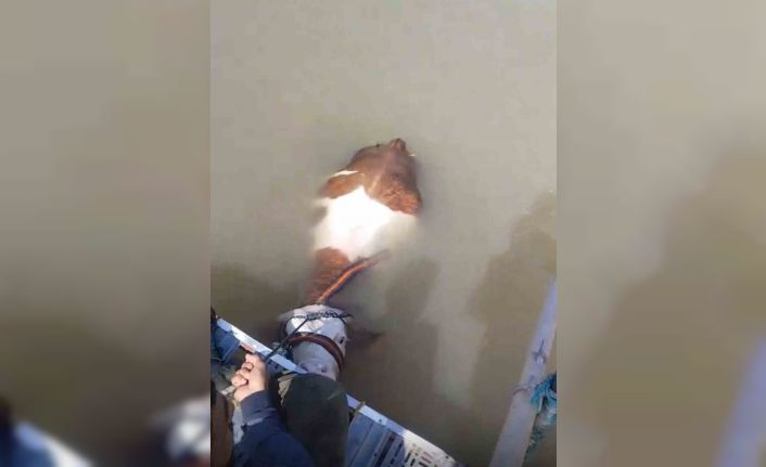 Elazığ’ın Palu ilçesinde Murat Nehri’ne giren ve bir adada mahsur kalan tosun, balıkçı Memet Şekerci ve arkadaşları tarafından kelek yardımıyla kurtarıldı.