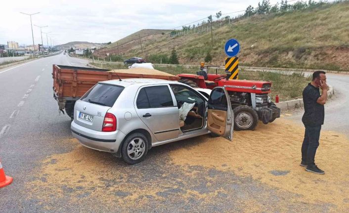Çorum’un Sungurlu ilçesinde otomobil ile buğday yüklü traktörün çarpışması sonucu meydana gelen trafik kazasında 1 kişi yaralandı.
