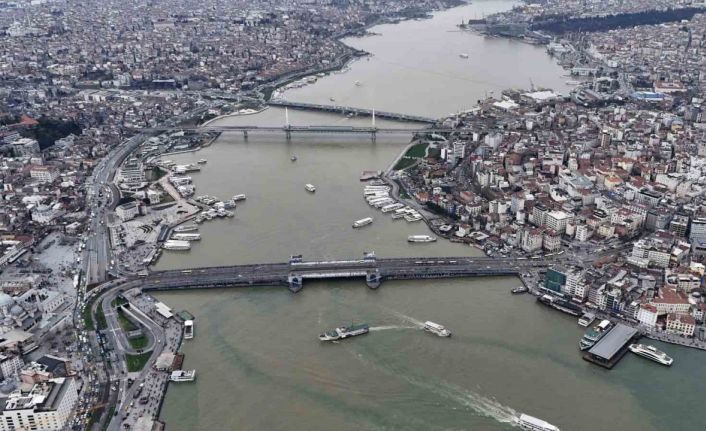İstanbul`da etkili olan sağanak yağış sonrası dereler ve kanalizasyonlardan gelen çamurlu su, Haliç ile buluşmasıyla suyun rengi kahverengiye dönüştü. Çamura bulanan Haliç havadan görüntülendi.