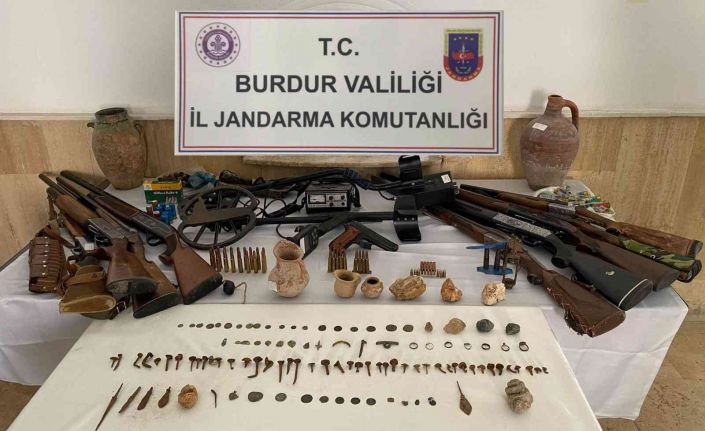 Burdur’un Bucak ilçesinde jandarma ekiplerinin 17 adrese düzenlediği tarihi eser operasyonunda, yüzlerce tarihi eser ile silahlar ele geçirildi.