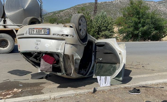 Burdur-Antalya karayolunda iki otomobilin çarpışması sonucu meydana gelen trafik kazasında takla atan otomobildeki 4 kişi yaralandı.