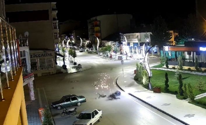 Burdur’un Gölhisar ilçesinde motosikletin kaldırıma çarpması sonucu 100 metre sürüklenen motosikletteki 2 kişi yaralandı. Kaza güvenlik kameralarına yansıdı.