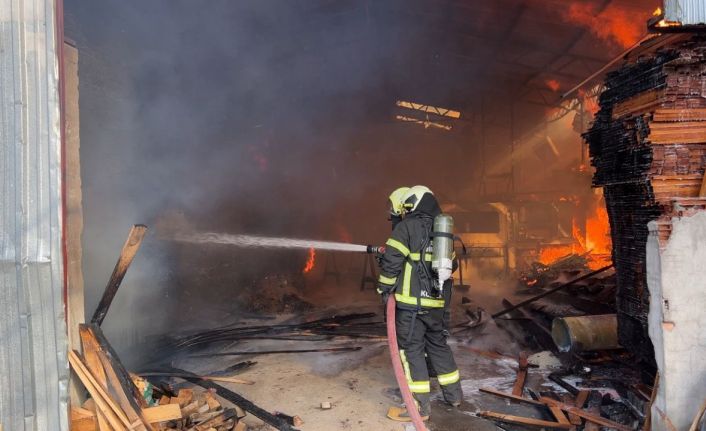 Burdur’da kereste fabrikası çıkan yangında küle döndü