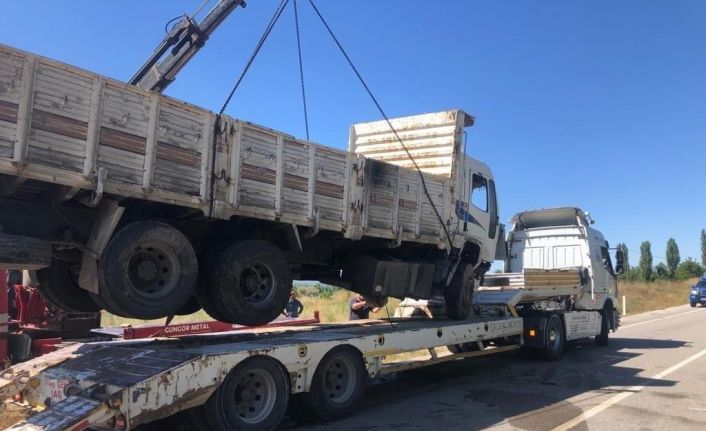 Kazaya karışan kamyon, sabah saatlerinde vinç ile çekiciye yüklenerek otoparka çekildi. Yaralının tedavisinin sürdüğü öğrenildi.