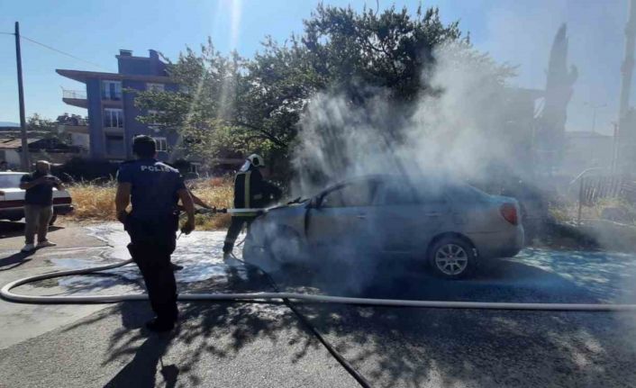 Burdur’da seyir halindeki otomobil alev alev yandı