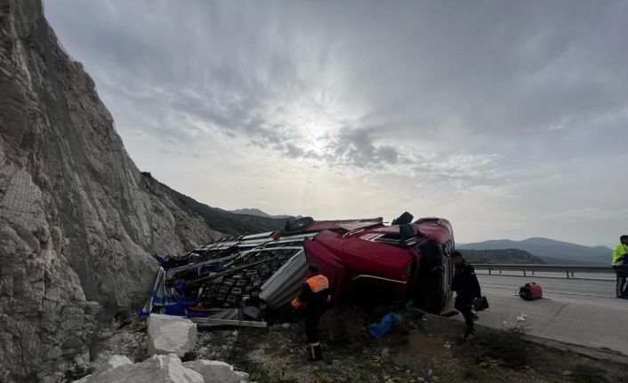 Burdur Antalya karayolunda kontrolden çıkarak şarampole devrilen tırda bulunan 2 kişi yaralandı.