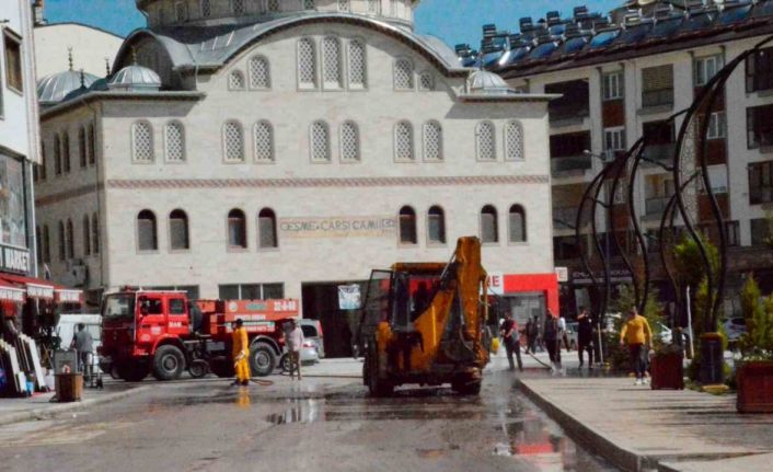 Günün aydınlanması ile birlikte ekipler caddelerde temizlik çalışması yapıp tıkanmış kanalizasyon hatlarını açmak için yoğun çaba sarf etti.