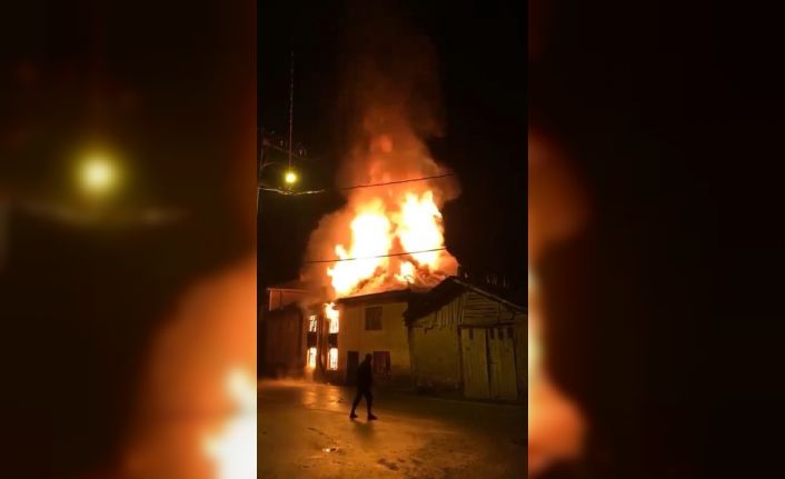 İki katlı evin alev alev yanma anı ise cep telefon kamerasına yansıdı.
