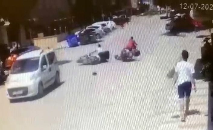 Bursa’nın İnegöl ilçesinde meydana gelen kazada 2 motosiklet çarpıştı, 1 kişi yaralandı. Kaza anı bir işyeri güvenlik kameralarına saniye saniye yansıdı.