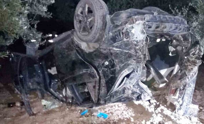 İngiliz vatandaşı sürücünün direksiyon hakimiyetini kaybetmesiyle zeytinlik içine giren araç 60 metre sürüklenip takla attı. Kazada sürüklenen otomobilin sürücüsü ağır yaralandı.