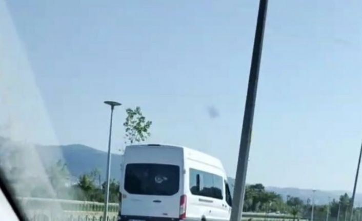 Öte yandan, diğer bir görüntüde ise servis aracı sürücüsü kendisinin ve serviste bulunanların canını hiçe sayarak ters şeritten süratli bir şekilde gitti. O anlar cep telefon kamerasına yansıdı.
