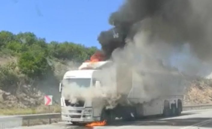 Bursa’da cam yüklü tır alev alev yandı. O anlar cep telefonu kamerasına yansıdı.