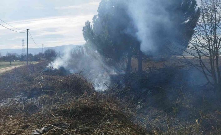 Bursa’nın Orhangazi ilçesinde daha önce kesimi yapan ağaçlar tutuştu.