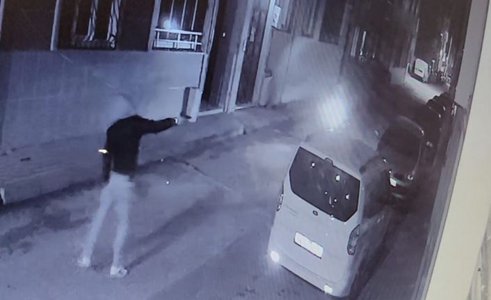 Güvenlik kamerası görüntülerinde şahısların gelip evib zilini çaldığı, daha sonra motosikletle gelip ikamete ateş açtıkları görüldü.