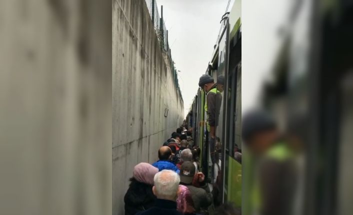 Bursa’da etkili olan lodos hayatı olumsuz etkiledi. Bursaray fırtına sebebiyle arıza yapınca, yolcular tahliye edildi.
