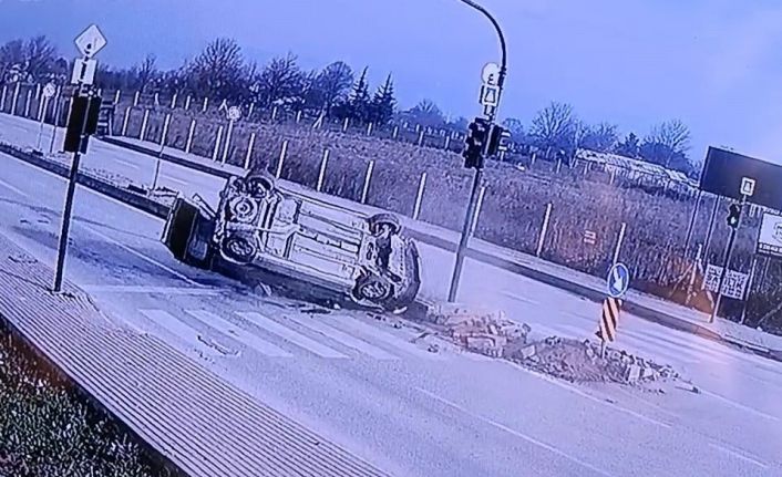 Bursa’nın İnegöl ilçesinde iki otomobilin çarpıştığı kazada 4 kişi yaralandı. Kaza anı bir iş yerinin güvenlik kamerasına saniye saniye yansıdı.
