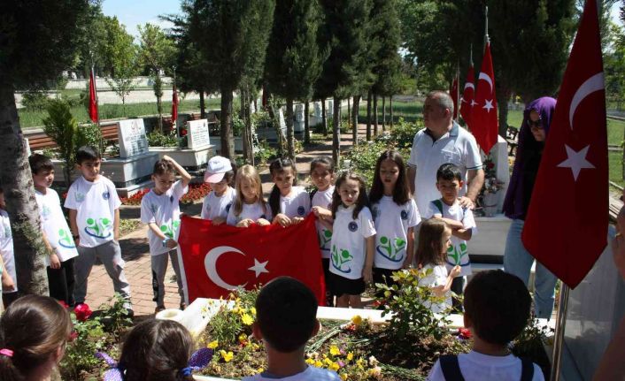 Bursa’da ilkokul öğrencilerinden şehitliğe ziyaret