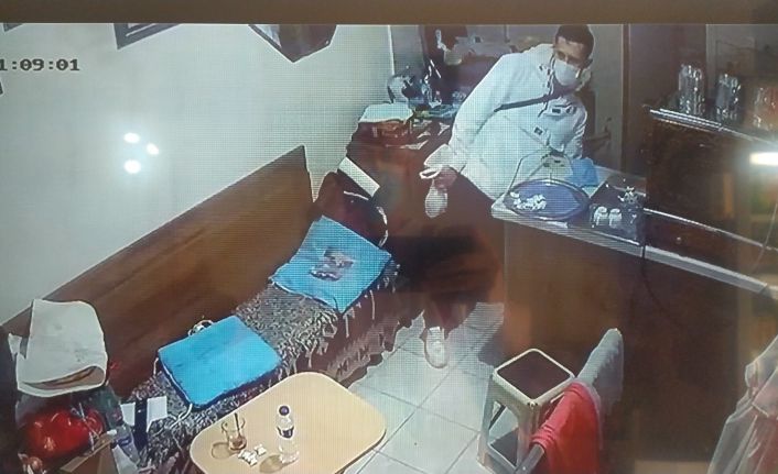 Edinilen bilgiye göre dışarıda bulunan müşterileriyle ilgilenen Hatice A.’nın yokluğunu fırsat bilen hırsız, hemen arkasından içeri girdi. Kapıyı da arkadan kapatan hırsız direkt tezgahın başına gelerek önce etrafı kolaçan etti. Daha sonra "eliyle koymuş" gibi tezgahın altında duran içinde 2 bin 500 lira nakit bulunan çantayı alarak hızla uzaklaştı. Hemen arkasından içeri giren Hatice A. şüphelenerek tezgahın altındaki çantasına baktı. Hatice A. çantayı bulamayınca güvenlik kamerasını izlemeye başladı. Çantasının çalındığını fark eden Hatice A. polis ekiplerini arayarak ihbarda bulundu.