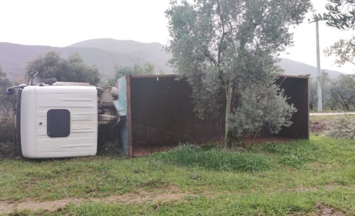 Bursa’da kontrolden çıkan kamyon zeytinliğe uçtu. Kazada sürücü hafif şekilde yaralandı.