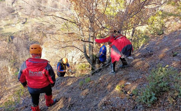 Bursa’da 50 metrelik uçuruma yuvarlanarak orada mahsur kalan köpek, açlıktan ve susuzluktan ölmek üzereyken nefes kesen operasyonla kurtarıldı.